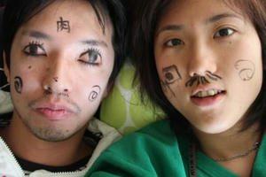 年末恒例の酔客が、テレビカメラの集団に